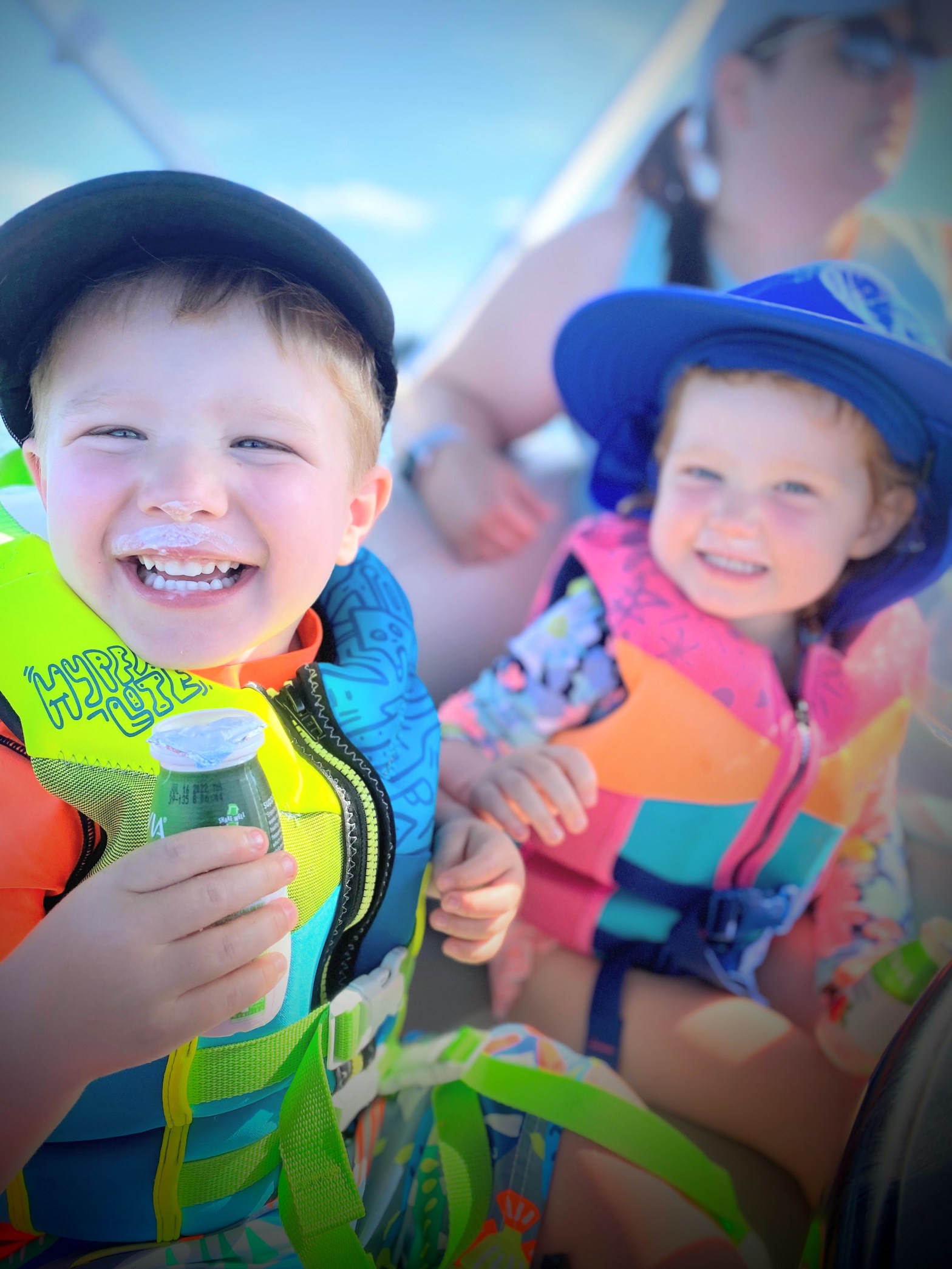 On a pontoon boat with friends today, I felt my maternal claws loosen their grip as Evelyn sat in the boat’s rear with her friend, his attentive Mom, and his equally attentive Grandma.