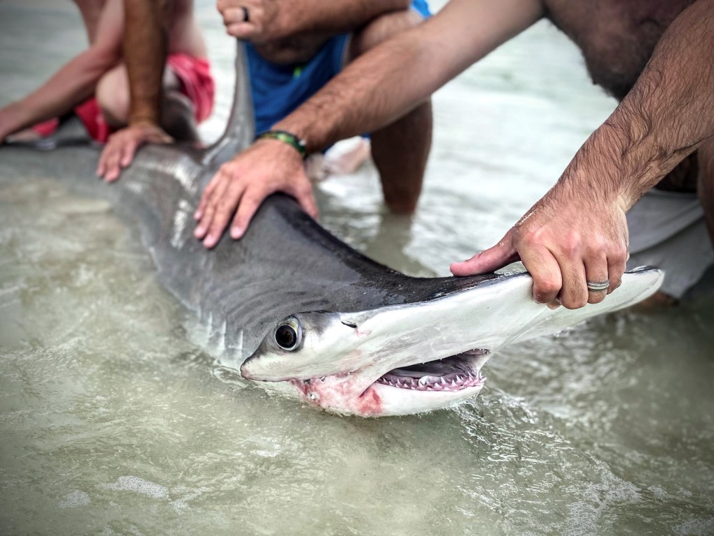 And after the pole bobbed, reeled, pulled and yanked the shark in, they got it.