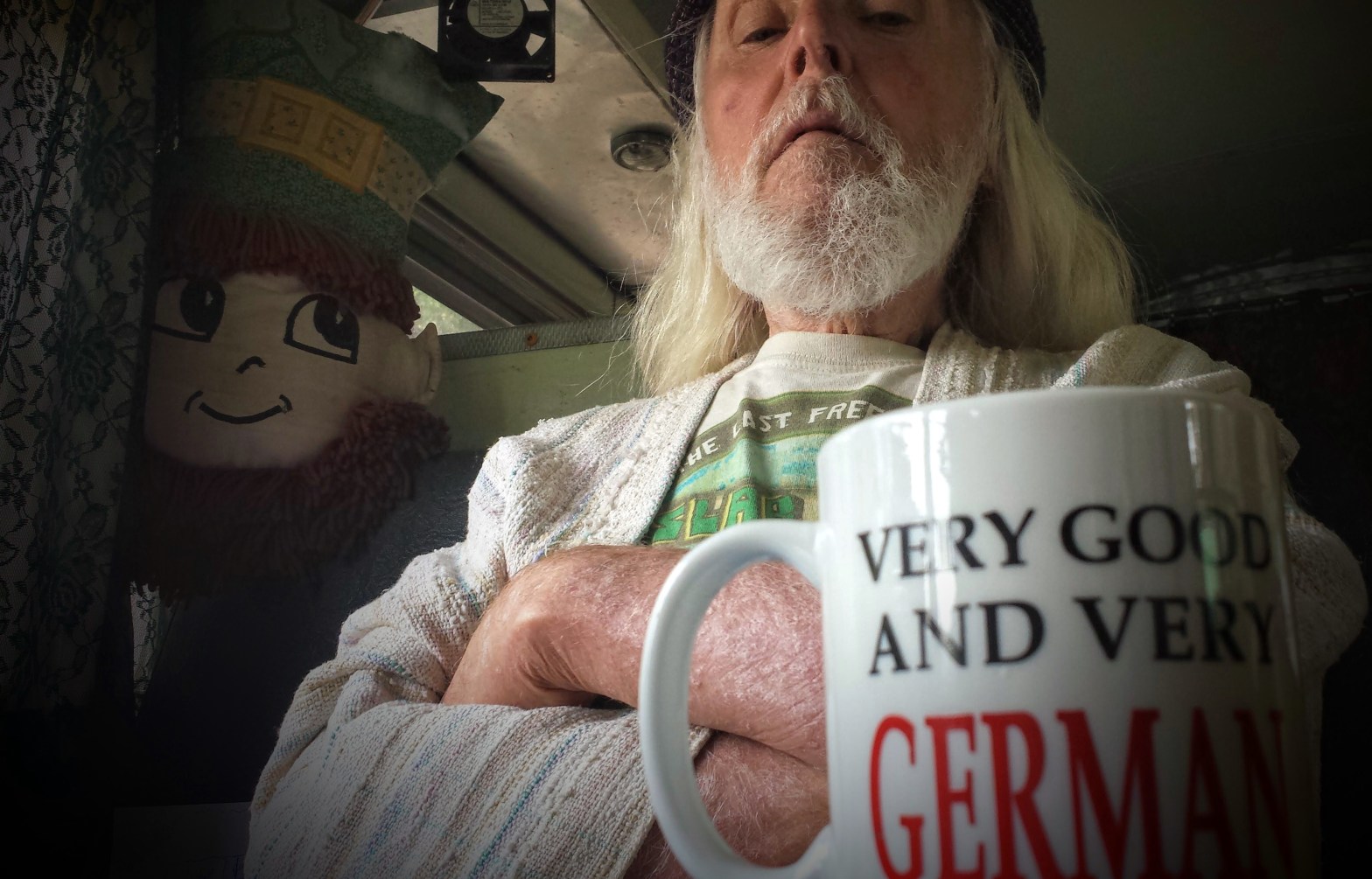 “I’m heading south in a couple of days.” To his second home in Venice Beach, where he goes when the weather turns. “Are you taking your bus?” I met him in 2012 when he lived on it. At that time, he could still drive on his own.