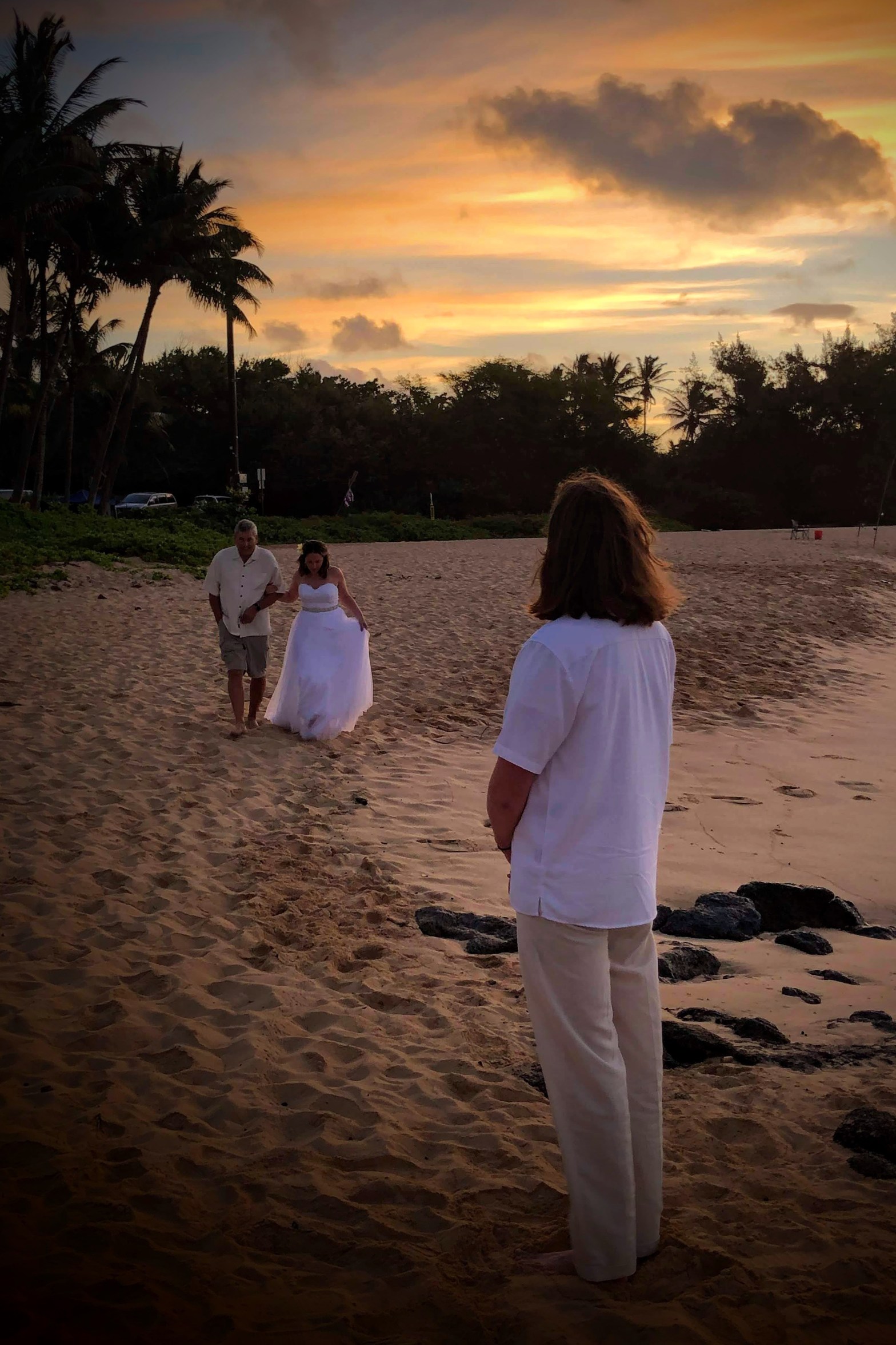 I was two months pregnant when I walked shoeless on the sand with an arm hooked onto my dads at sunrise on Poipu Beach in Kauai. And on this day, April 20th, 2019, Dave and I were married in front of our family and friends there.
