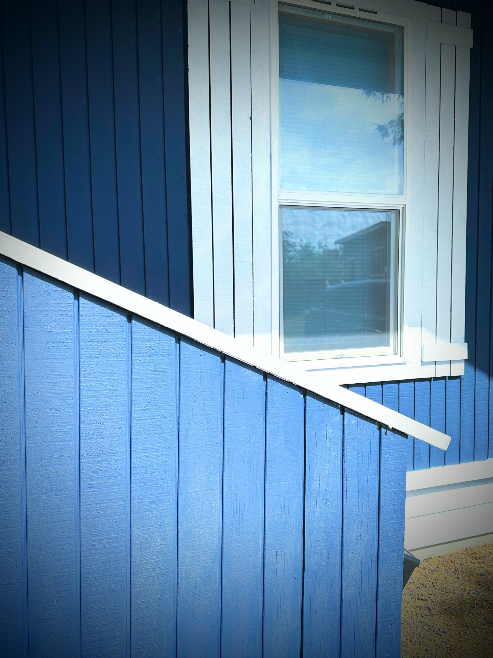Stepping back to admire our progress, I replaced the faded green and worn-out red trim with crisp blue and white, instantly revitalizing the place. It looks incredible, like it shed ten years off its age. This place is truly transformed!