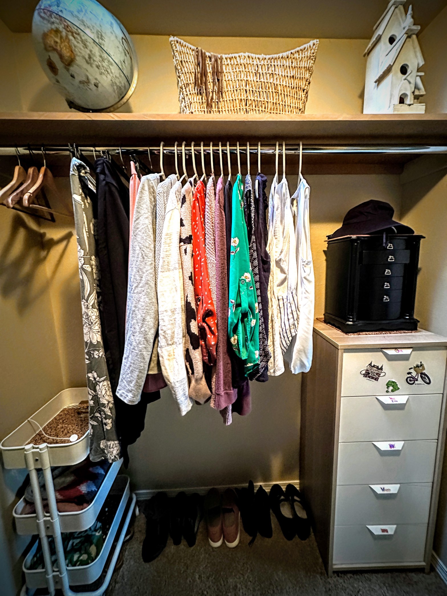 Today, my alter ego, Interior Designing Woman Jackie, has taken over this house. She is a whirlwind of energy! She has been moving dressers upstairs, rearranging furniture, fluffing pillows, stealing hangers from Dave so all hers match, vacuuming, doing all the laundry and dishes. She remade the clothes closet, and even had the energy to sweep after dinner. Let me tell you, if only she could make an appearance every day.