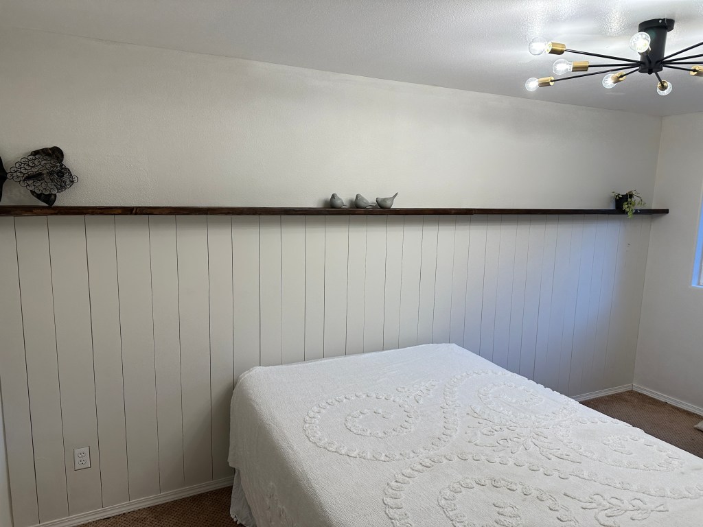 A major step was taken on the guest bedroom remodel with the addition of floating shelves that I sanded and stained and that Dave hung. Next, I need to think about a sitting area because although the space is for guests, if I make a spot to take my book to, that’d be pretty dope.
