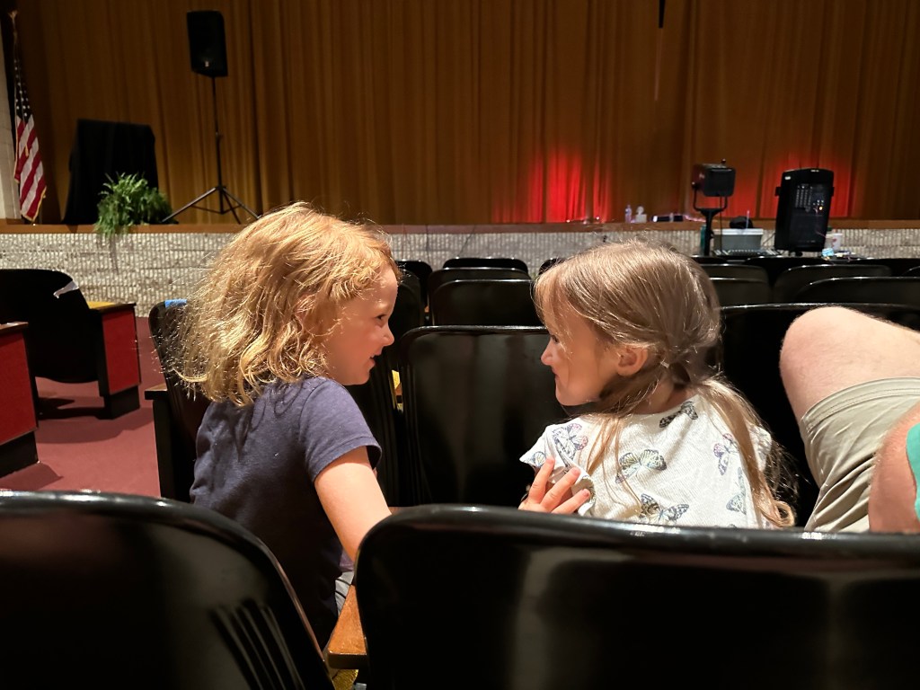 Evelyn has made of soul-sister friend. Their instant bond formed as Emma leaped out of her aunt’s van and sprinted up the concrete driveway, with Evelyn’s split second decision to trail behind. Within minutes, they’d united forces, armed with makeshift swords against their much older and larger cousin. They’ve also dunked in an ice chest, side by side, napped, hammock swung and settled down next to each other at tonight’s magician show. But it was our river trip yesterday that truly touched me. Emma, in all her anticipation of a playdate, had packed an extra juice box “for her friend.”