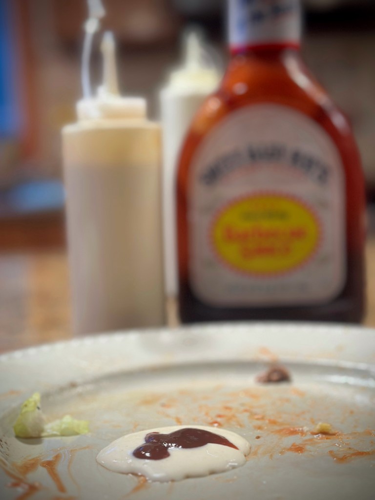 Speaking of creativity, ever tried pairing freshly hand-cut sweet potato fries with a homemade Caesar dressing and barbecue sauce? Until today, me either. The combination of garlic spice, lemon zestiness, and barbecue sweetness is a mouth watering concoction. If I had a restaurant, I’d call it “Jaclynn’s Jacked Up Sauce,” drawing people from four states away to experience its magic.