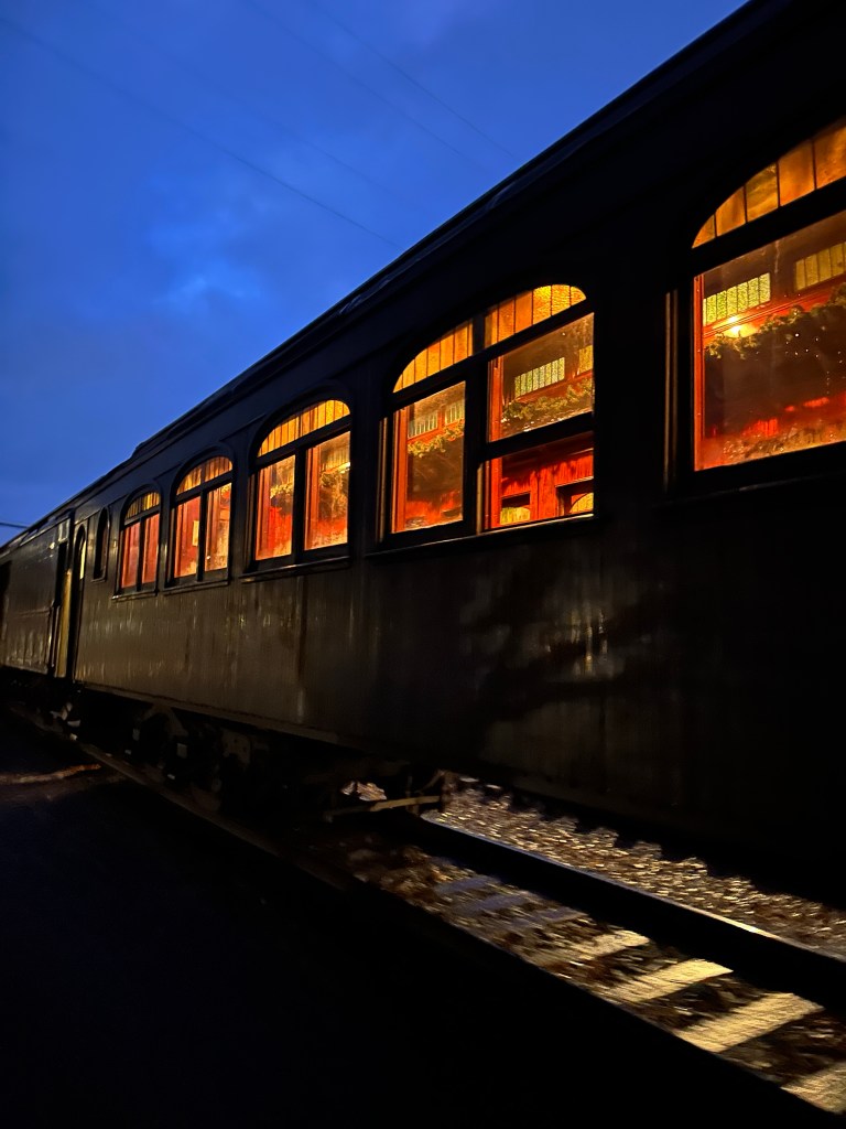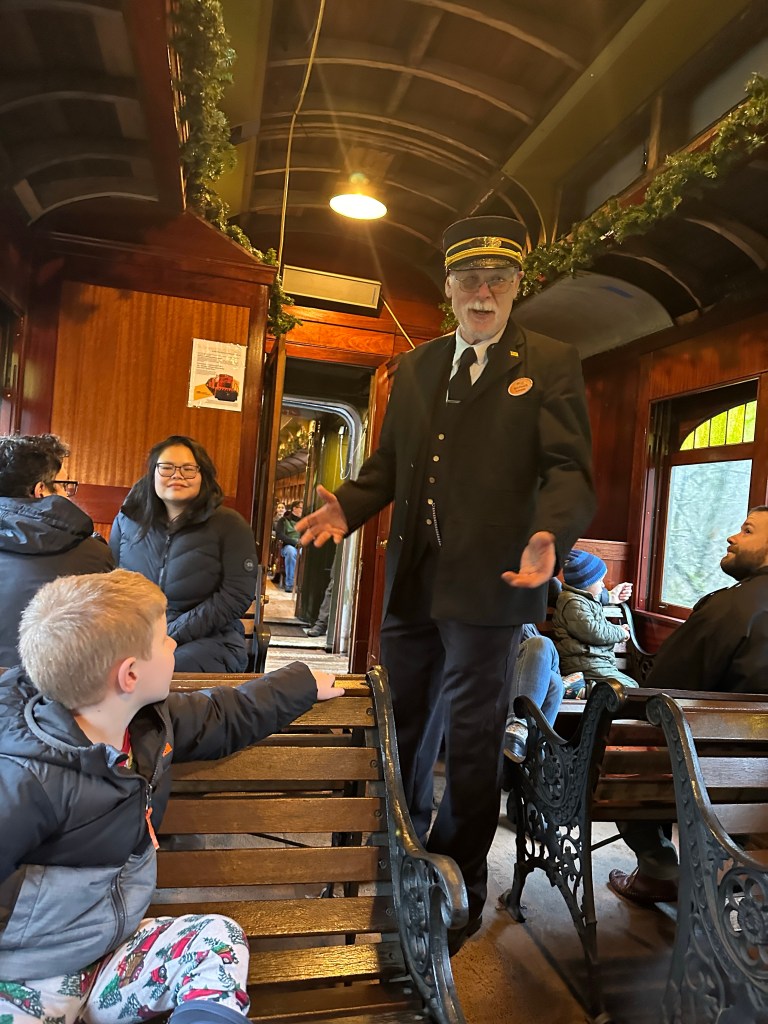 “That Santa visit was quite expensive,” Dave remarked while waiting in line for the button-push cocoa machine to work its magic at a building associated with the Northwest Railway Museum. The Santa Train is a unique experience from riding a steam train, the conductor offering his hand to help on the steep stairs with train shtick conversation like, “You better keep me on track” to diverse seating options in each car, including wooden benches and plush yet slightly torn velvet-backed chairs.