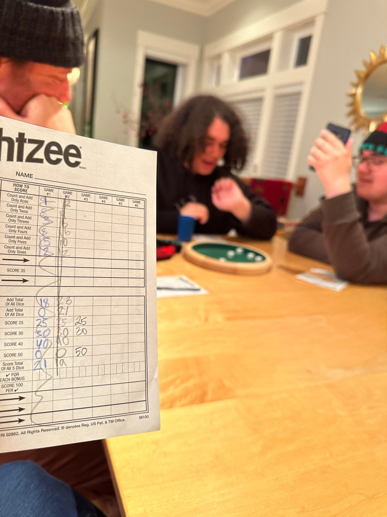 It’s hard to write when real life is so fun and engaging. I better go, but first video of our hilarious antics during the party game “Beat That!” Next up is Yahtzee!