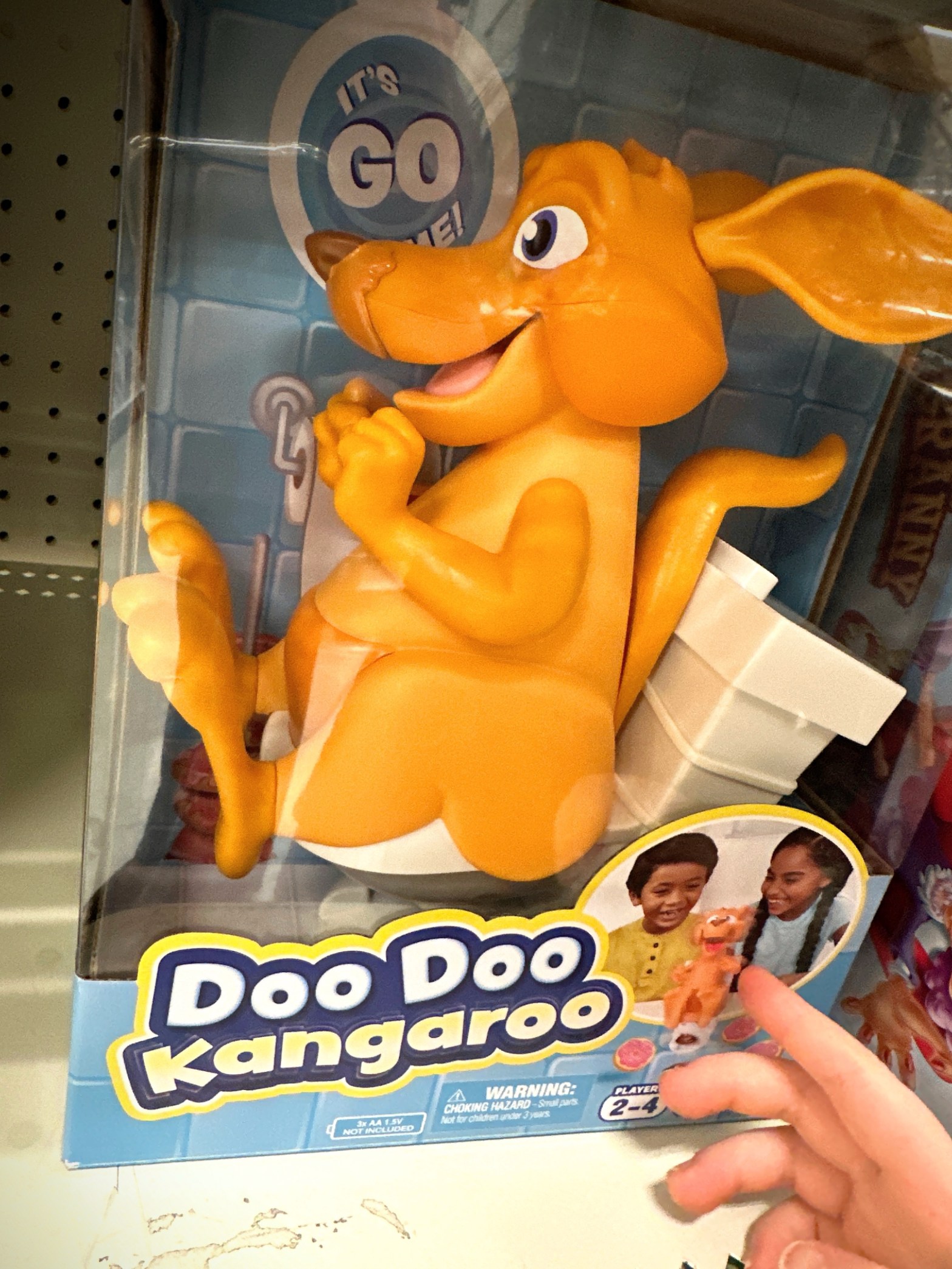 While browsing Target’s board games for a 5-year-old’s birthday, I saw Doo Doo Kangaroo, took a picture of it, and sent it to a friend. She later text me with this video of the game, and this: “If I’m getting the concept right, the game is you force-feed doughnuts to a kangaroo sitting on a toilet until he gets explosive doughnut diarrhea, and then you collect the diarrhea’d doughnuts.” To which I replied, “I cannot believe this is not straight out of the movie ‘Idiocracy’.”