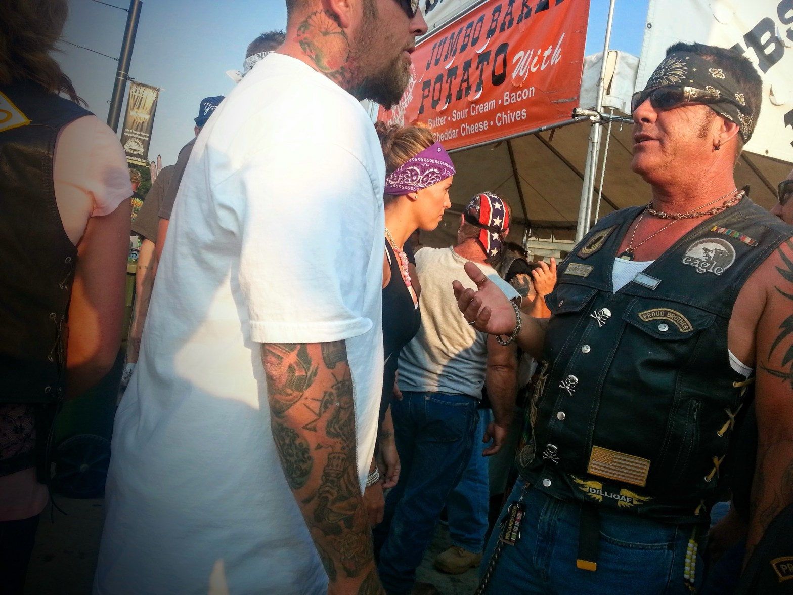Jason locates his friends, and after quick bro fist hugs, the group discuss their digs in Deadwood and the drive into Sturgis. Obviously, I’ve arrived with Jason as I stand directly behind him, but I am never acknowledged or introduced. To say I feel awkward is an understatement. Not knowing what else to do, I give up hope of an introduction and feign interest in what’s happening around me.