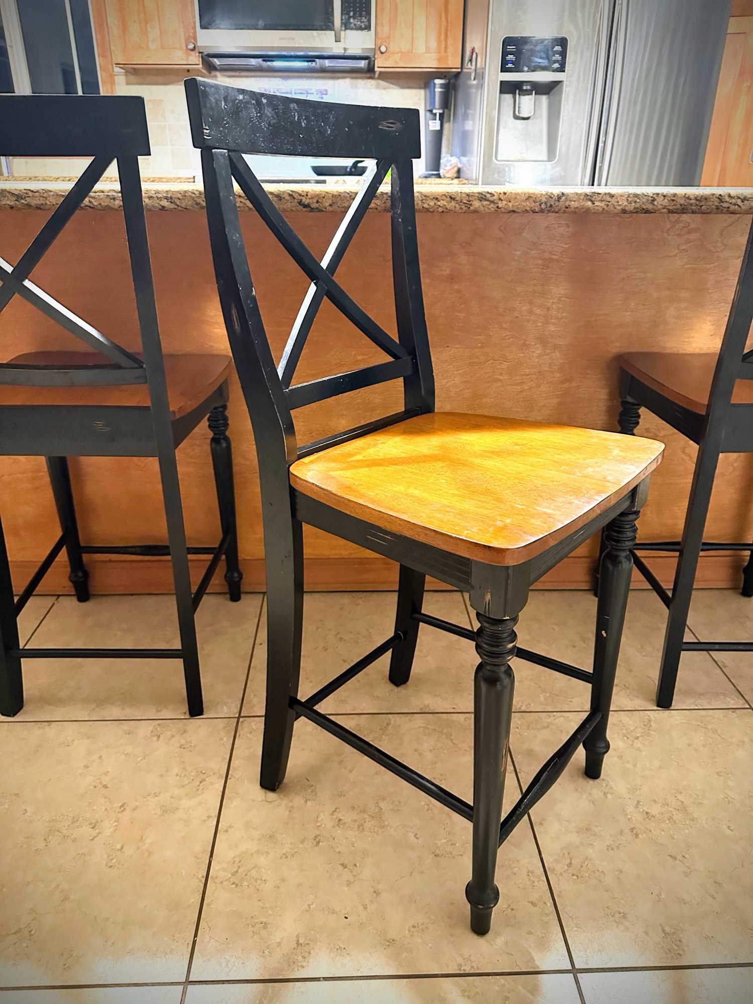 In the time it’s taken to write this, I’ve sold the barstools, and the person will be driving up from Olympia first thing in the morning. Where to sit, where to sit for cereal eating? Out to breakfast, we go!