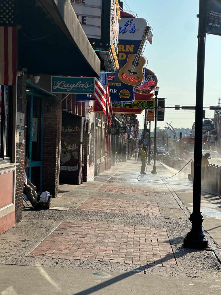 The stirrings of a dusking Nashville create the mortar in the community, from the dolly-pushing Bud Light and Crystal Springs water vendors to the pressure washing, weed whacking, and street sweepers. These things, the repairers of brickwork and Constitution paper salesmen are the backbone.