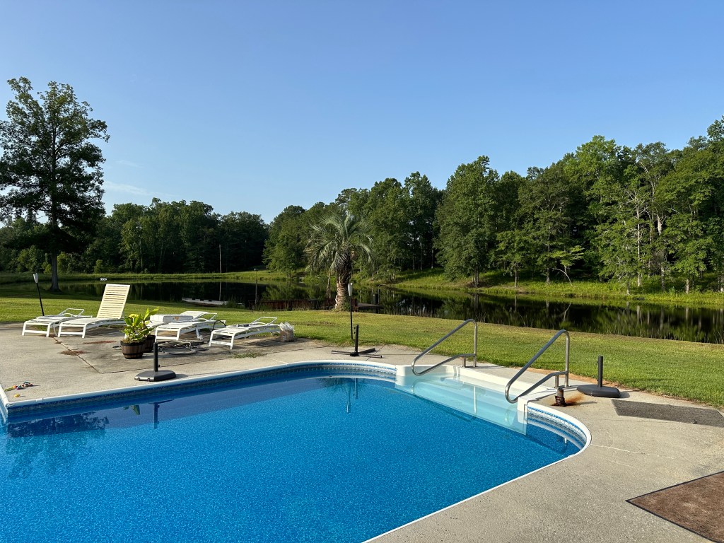 Even though the itch to get into our new house is not yet scratched, this pool house ain’t nothing to scoff at. Twelve feet out the slider door is a pool my family is in: morning, noon, and night.