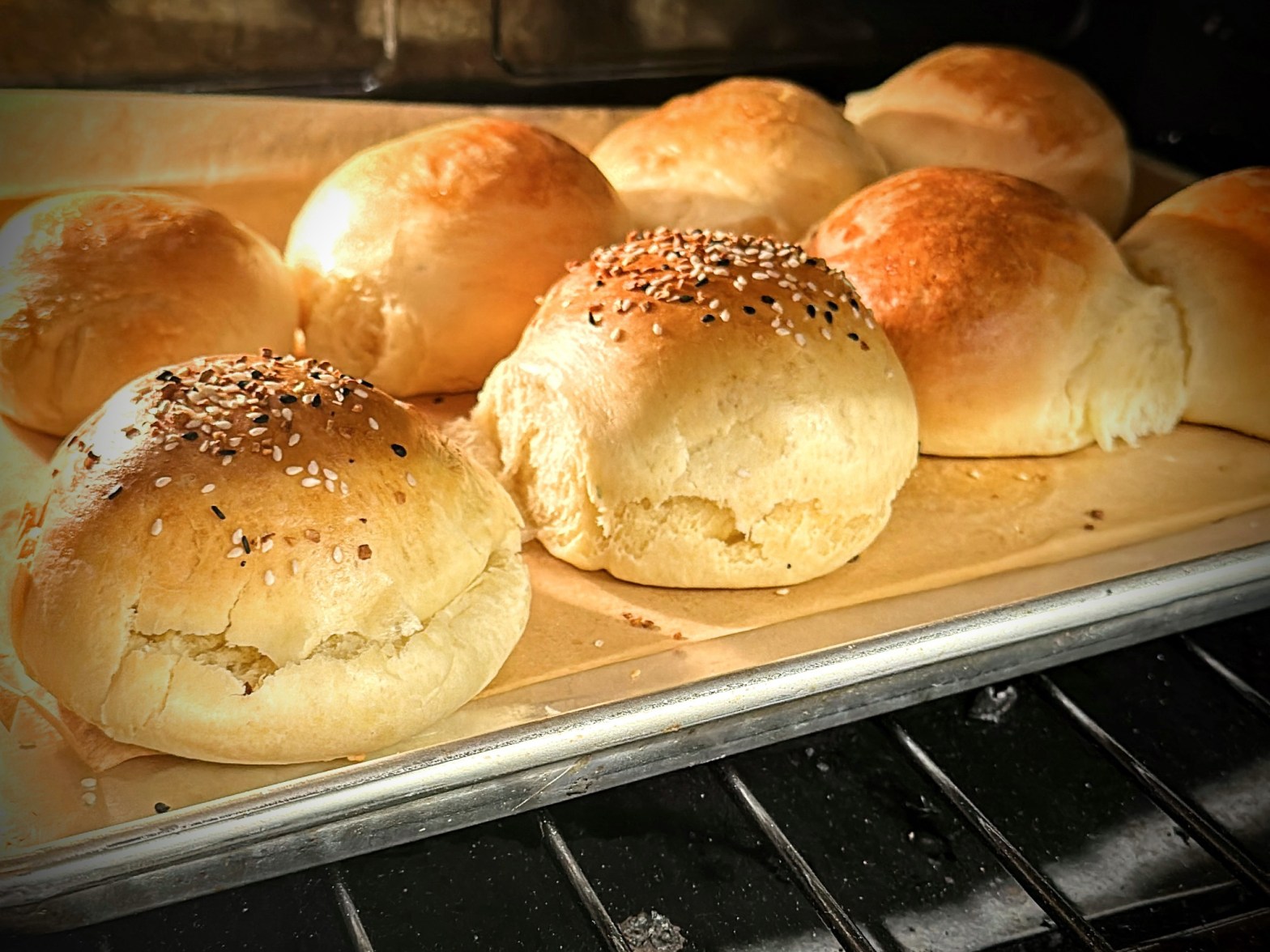 For my first-ever try at hamburger buns, I must say I grand-slammed them out of the park. In previous attempts at egg washes (brushing egg whites on dough), I’ve gone overboard, resulting in scrambled egg vibes rather than a proper sheen. This time, I lightly wetted the dough, carefully avoiding any snotty egg bits. The result? A golden-brown glisten that would make Julia Child shout, “Bon Appétit!”
