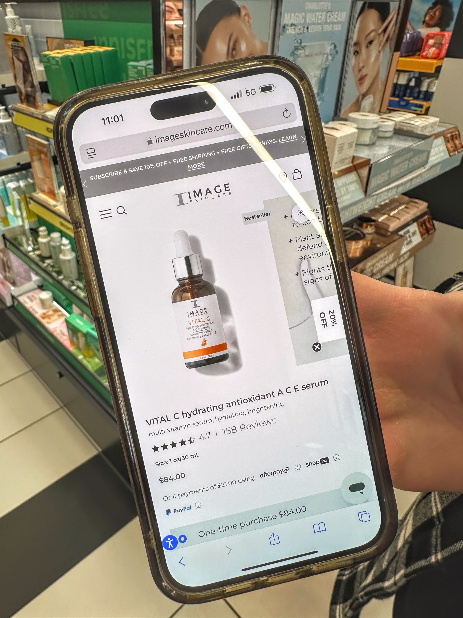 But I did buy something! And for my efforts, I also walked away with a few of those toothpick-thin perfume testers and a teaspoon-sized sample of a $550 shimmering glow serum.