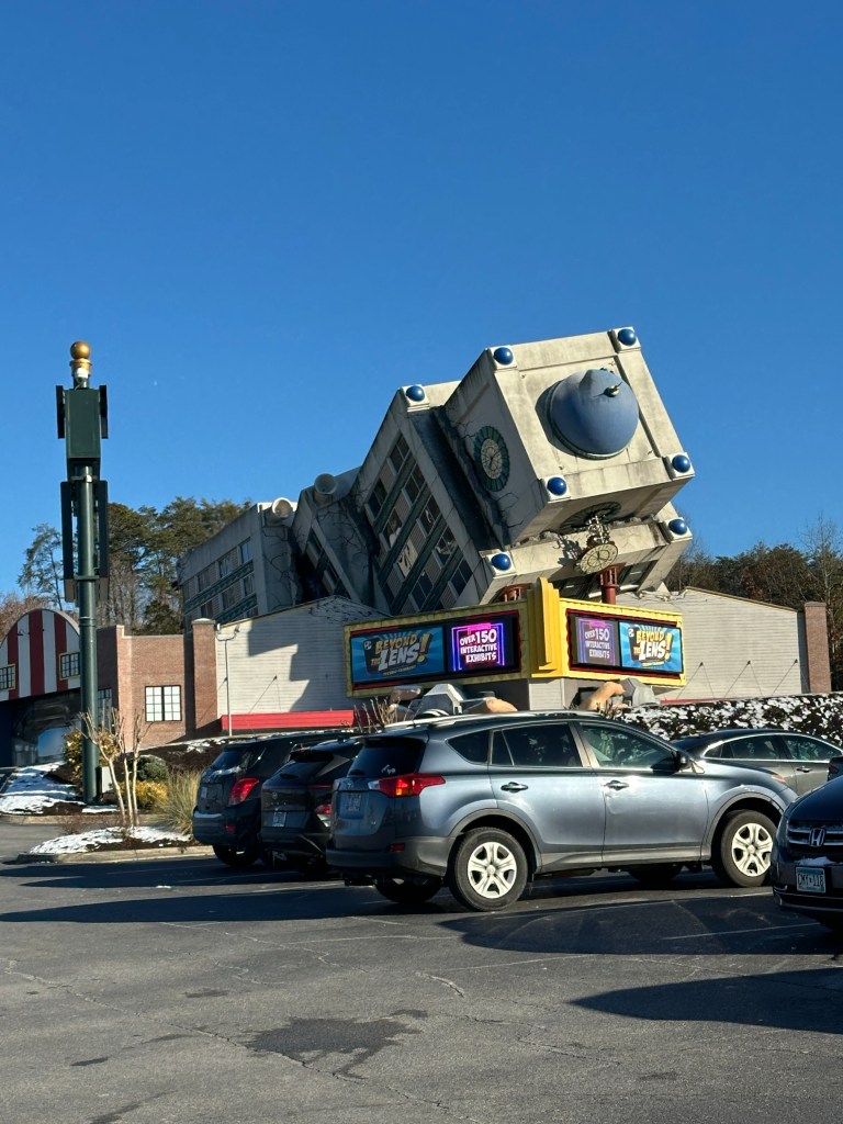 To get to Gatlinburg, we passed through Pigeon Forge. After the eighth antique store—each the size of a strip mall—I realized I wasn’t in Kansas anymore. The large town/mini city with a kid Vegas vibe had me sitting forward in my seat, my head swiveling to take in the architectural oddities. Among the highlights: are an upside-down building, a Titanic replica, King Kong scaling a skyscraper, and the Hatfield & McCoy Dinner Feud building.