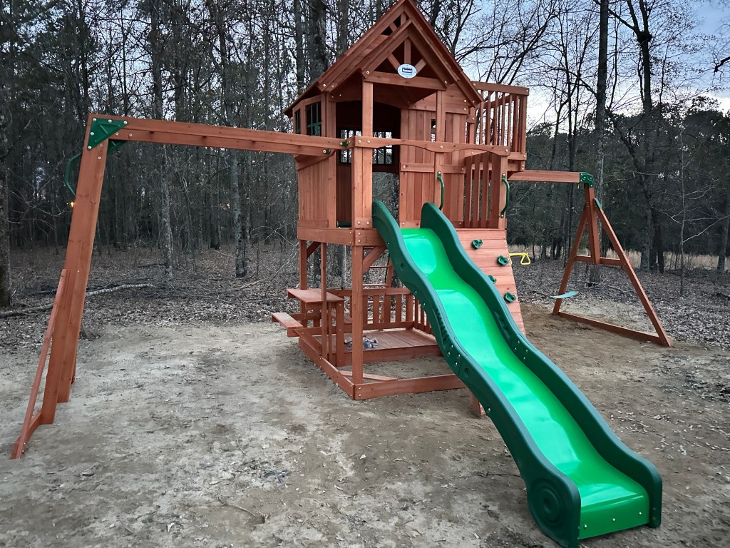 Now, back to the present time. I’m happy to report that the play structure—with monkey bars, swings, a slide, and a fort tall enough for even me to stand in—is officially complete! When Dave and his parents returned from next door, I didn’t see Evelyn with them. “Where is she?” I asked.