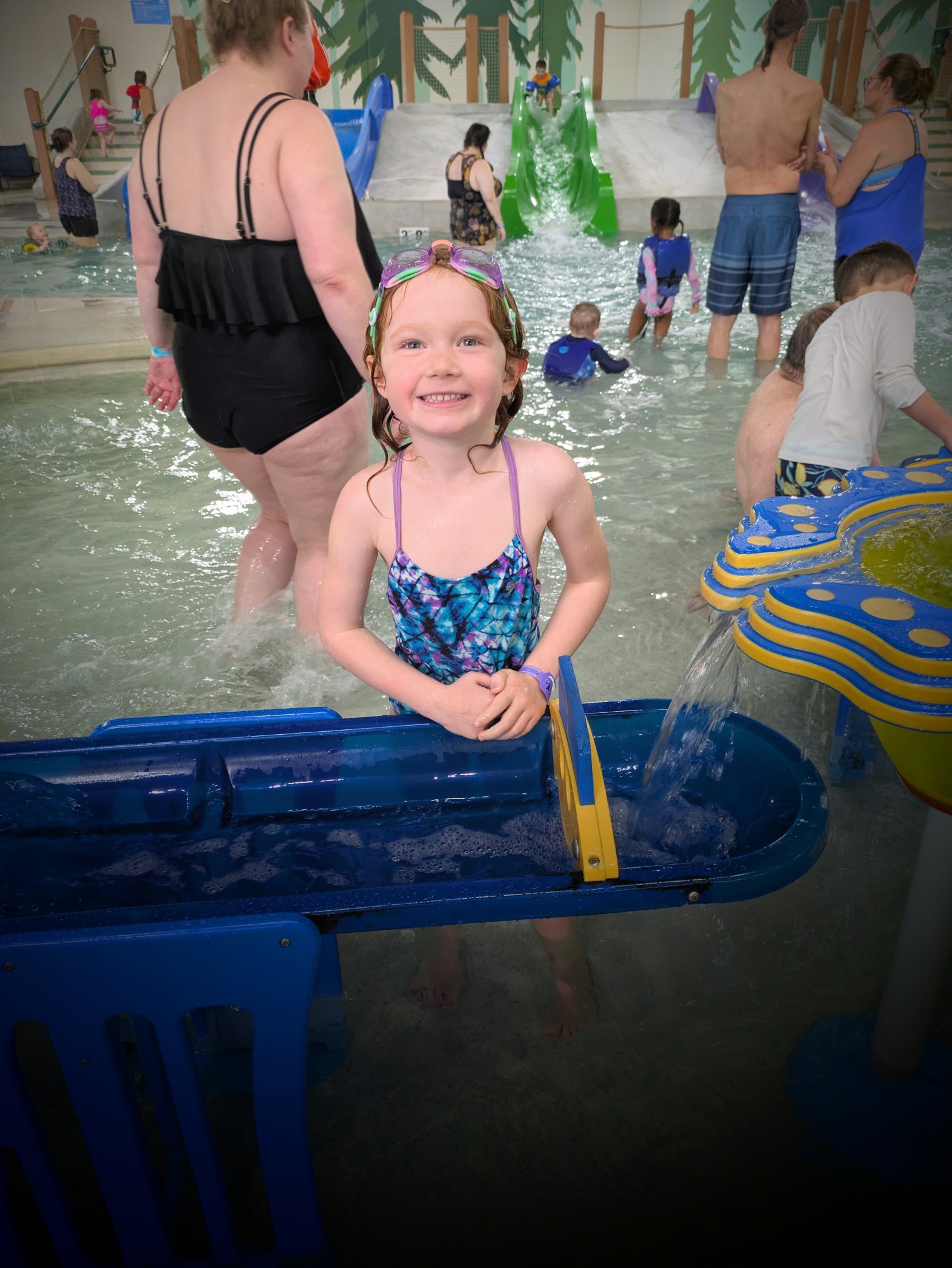 Did I mention we spent five, maybe six hours at the water park today? After an extra-large tube ride in an enclosed space, I got weirdly nauseous and had to take a break—sat outside in the sun for a bit, then went back to the room for a shower. I love taking showers in hotel rooms. Something about leaving my soap scum and loose hairs in someone else’s drain makes the experience even sweeter.