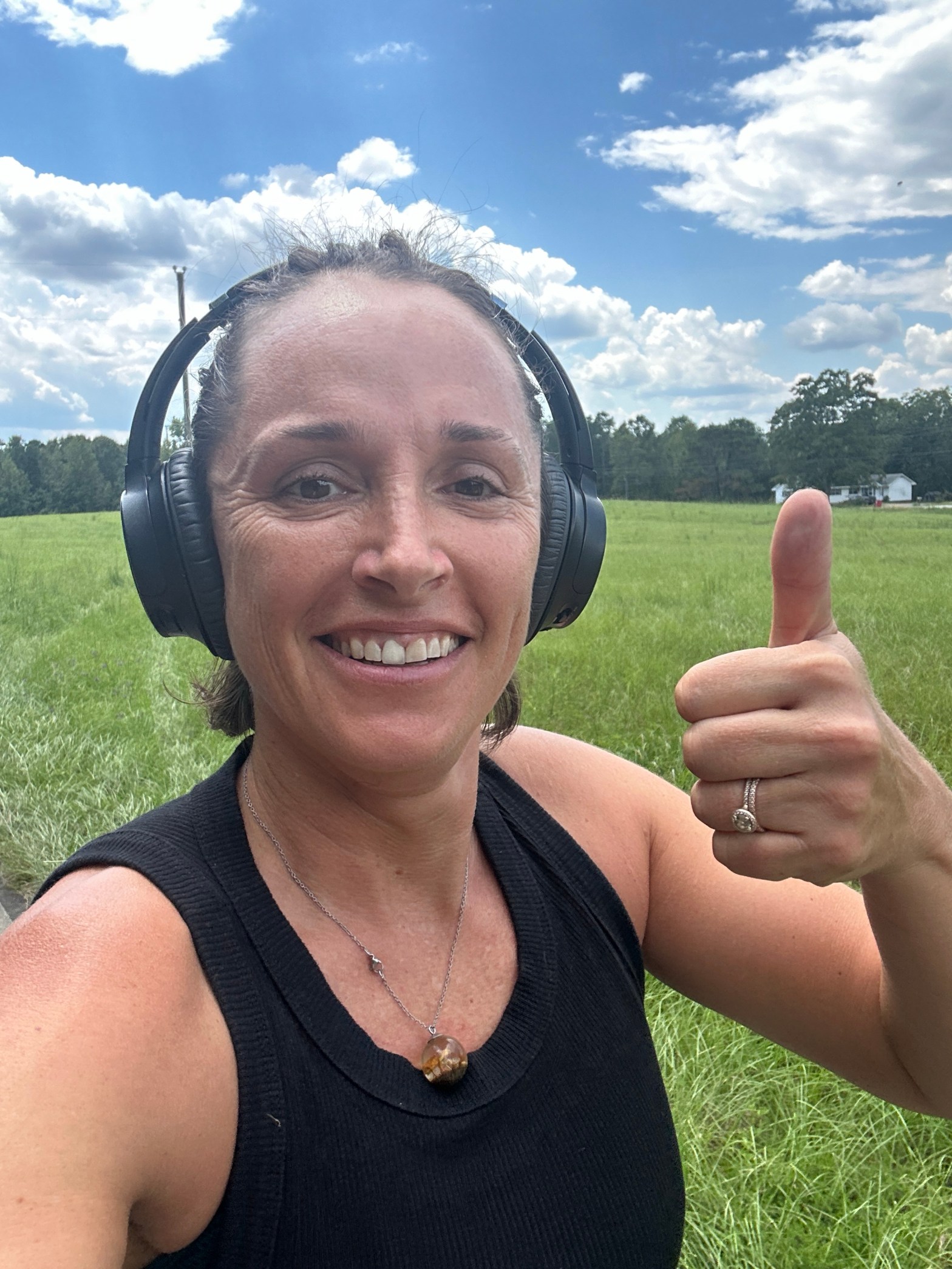 I went for a run today. Not on the treadmill, but on the road. The sun was high and hot, but I loved the stretches of pine shade and the occasional breeze. Nothing remarkable to note, except my knees felt strong and my hips felt tight. I’ll take to the carpet after this and swivel my legs back and forth to loosen them up.