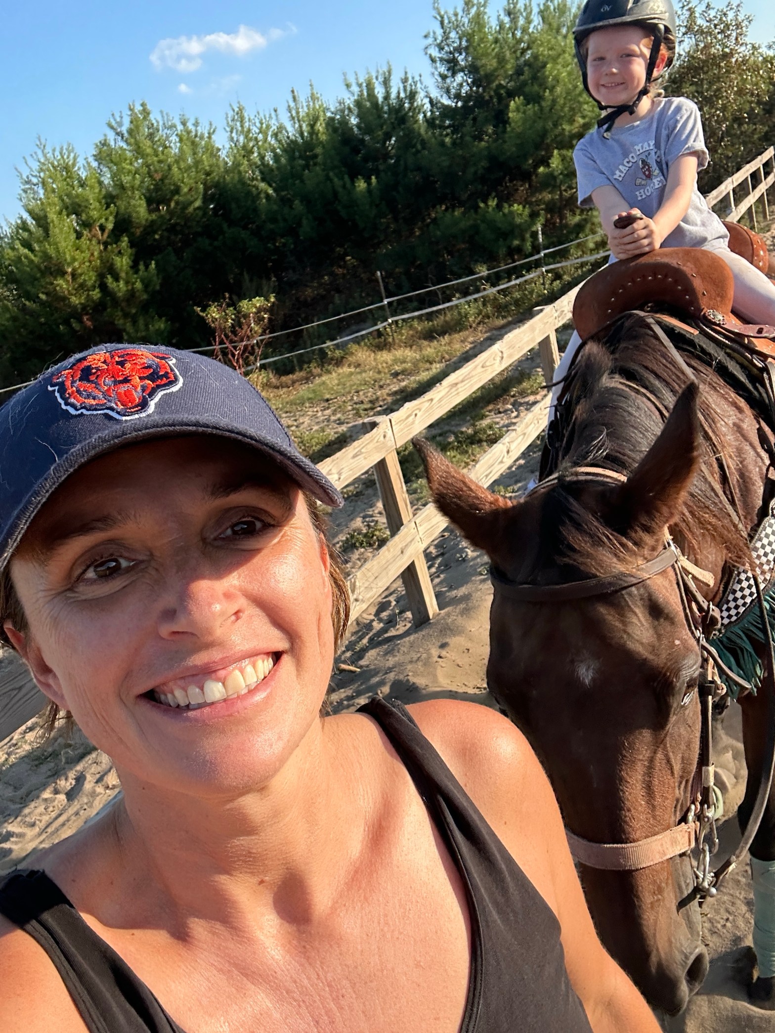 This past Monday, Aubrey taught her how to tug the reins to guide Betsy’s head and helped her place her feet in the stirrups of a hunter saddle. I’ve always loved horses, and my secret fear was that I was pulling Evelyn along into my dream instead of hers.