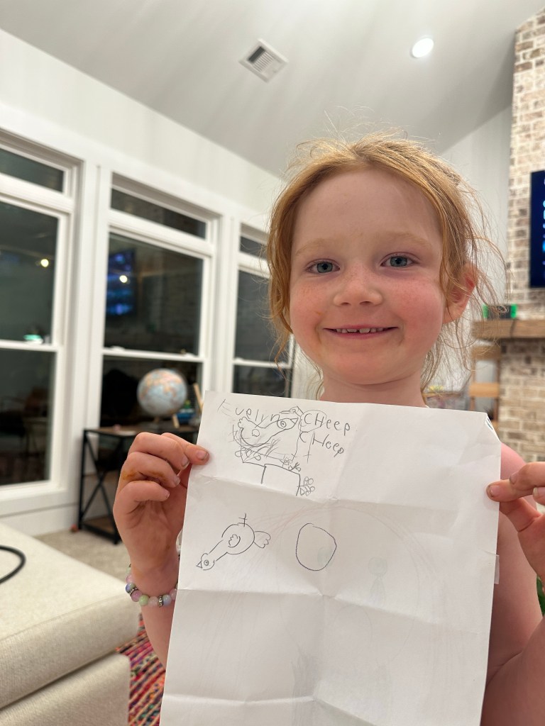 Accept that this sweet, freckled-nose, princess-of-play is expanding into more of herself. It’s terrifying. And I want this folded-up paper—the tear-streaked face—to go back in the box. I’m not ready.